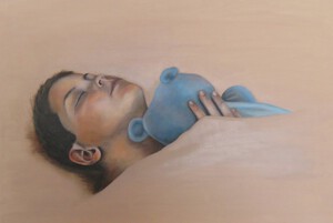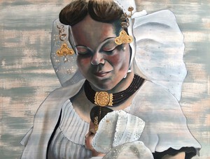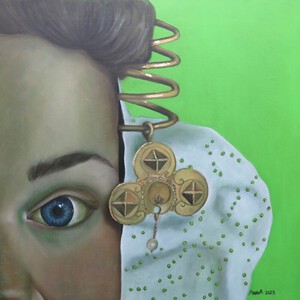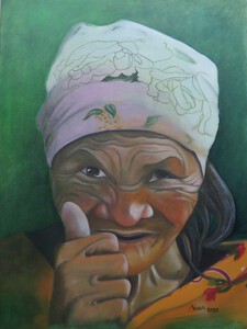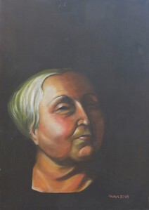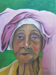 In mijn portretten probeer ik altijd iets van de persoon uit te drukken door kleurgebruik en/of toevoeging van een voorwerp